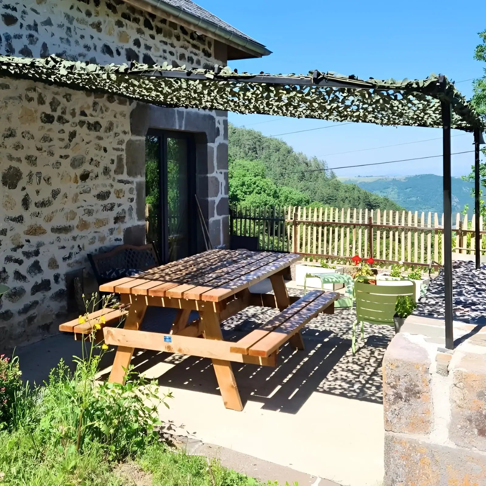 Imagina transformar tu espacio exterior en un refugio fresco y sombreado con nuestra red de camuflaje verde. Ya sea que te relajes en tu jardín, cubras tu pérgola para mayor protección solar o crees un discreto escondite para observar la fauna, esta resistente red es la solución. Diseñada para un aspecto estético y funcional, se integra a la perfección con el entorno natural, ofreciendo una excepcional resistencia a los rayos UV y al desgarro.